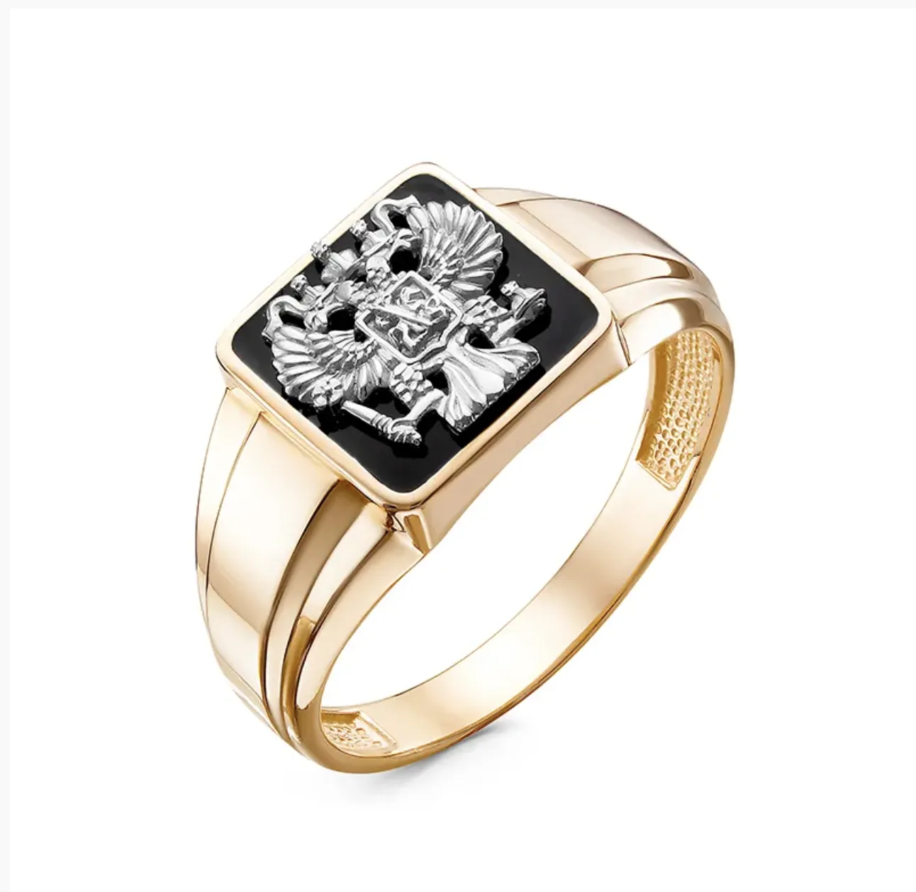 Массивное украшение с рельефным изображением герба — достойный выбор для настоящего патриота.