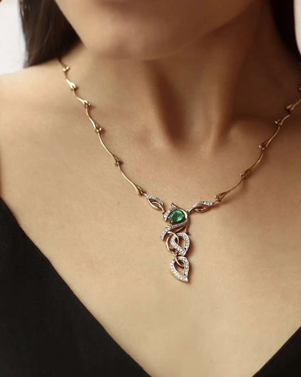 Колье из золота с изумрудом и бриллиантами