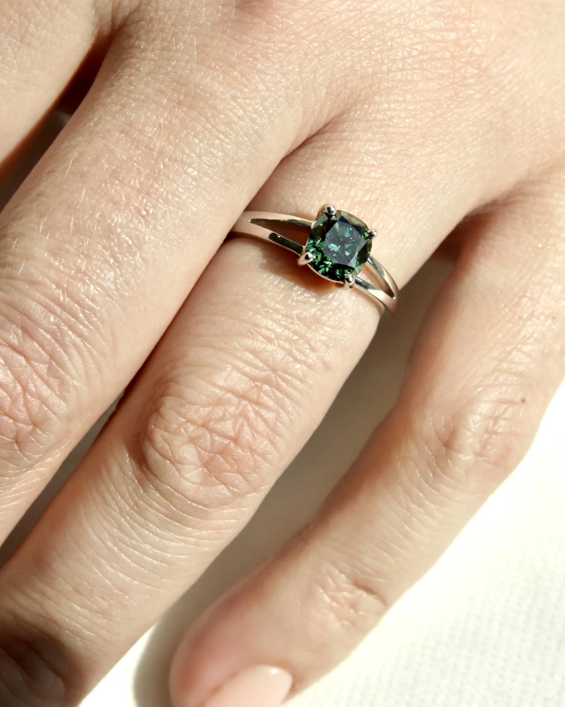 Кольцо из золота с зеленым бриллиантом