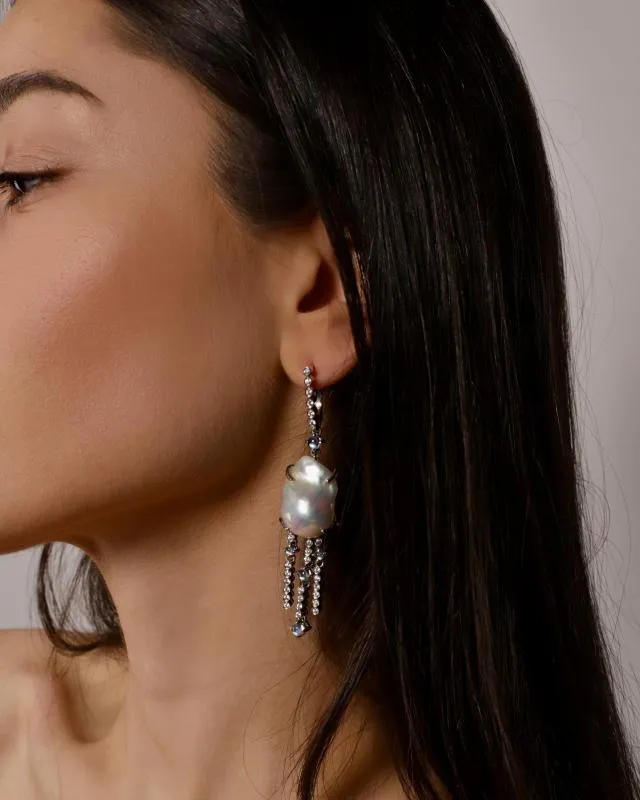 Серьги с жемчугом, бриллиантами и лунными камнями