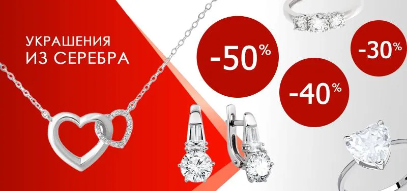 Акция до -50% на серебряные ювелирные изделия